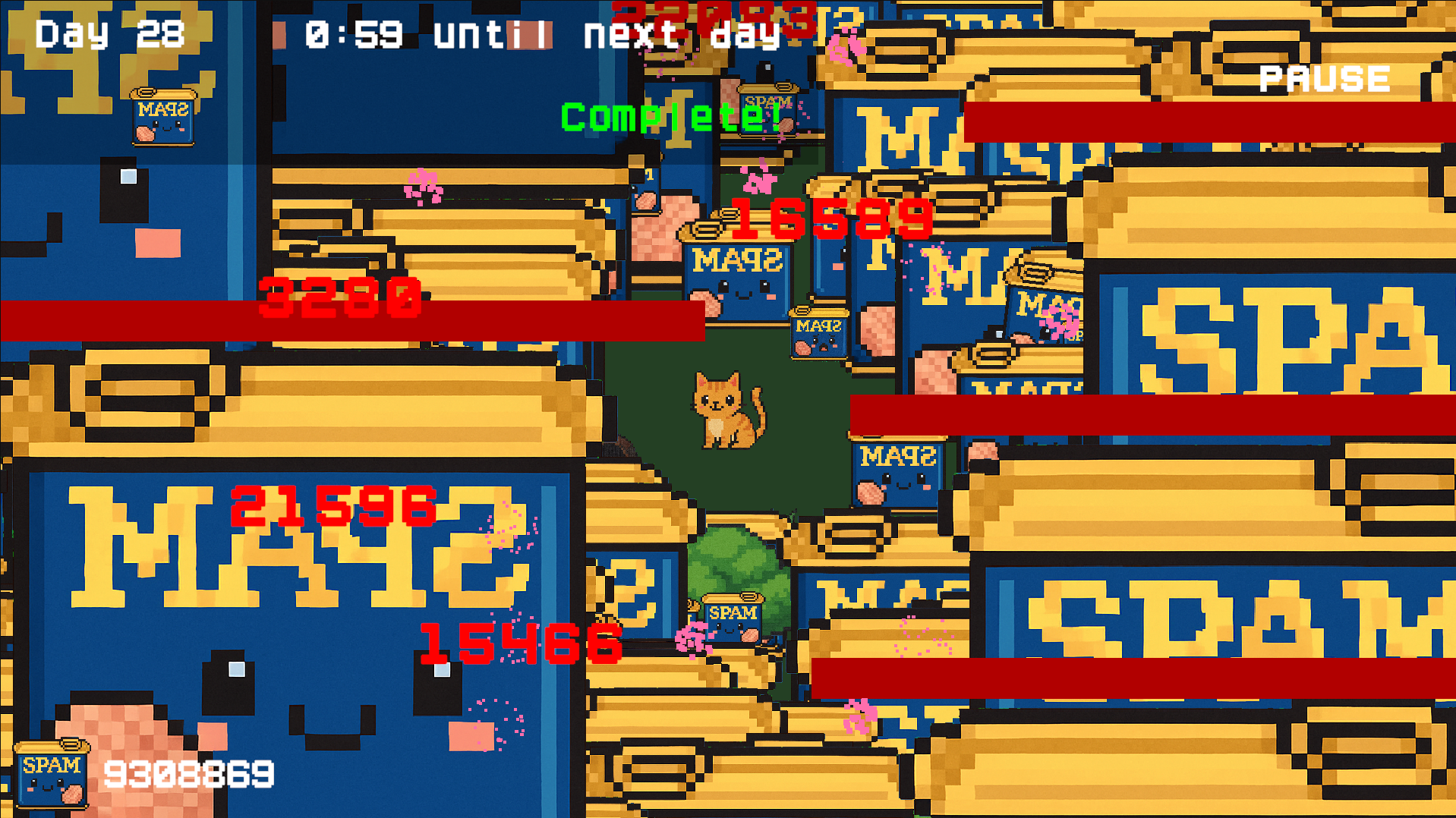 The goal is to hunt spam. You need to have enough to survive the day. You can upgrade your cat with the spam you hunt.